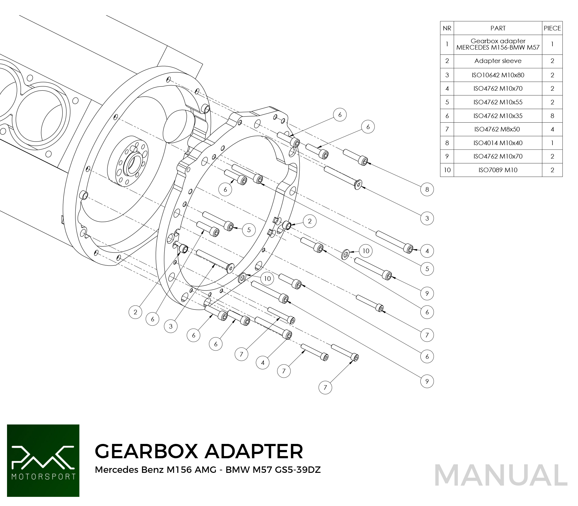 - Adapter umożliwiający połączenie (swap / konwersję) silnika Mercedes-Benz V8 M156 z manualną skrzynią biegów ZF (ZF Friedrichshafen) stosowaną w BMW. idealne rozwiązanie do amatorskiego oraz profesjonalnego motosportu.