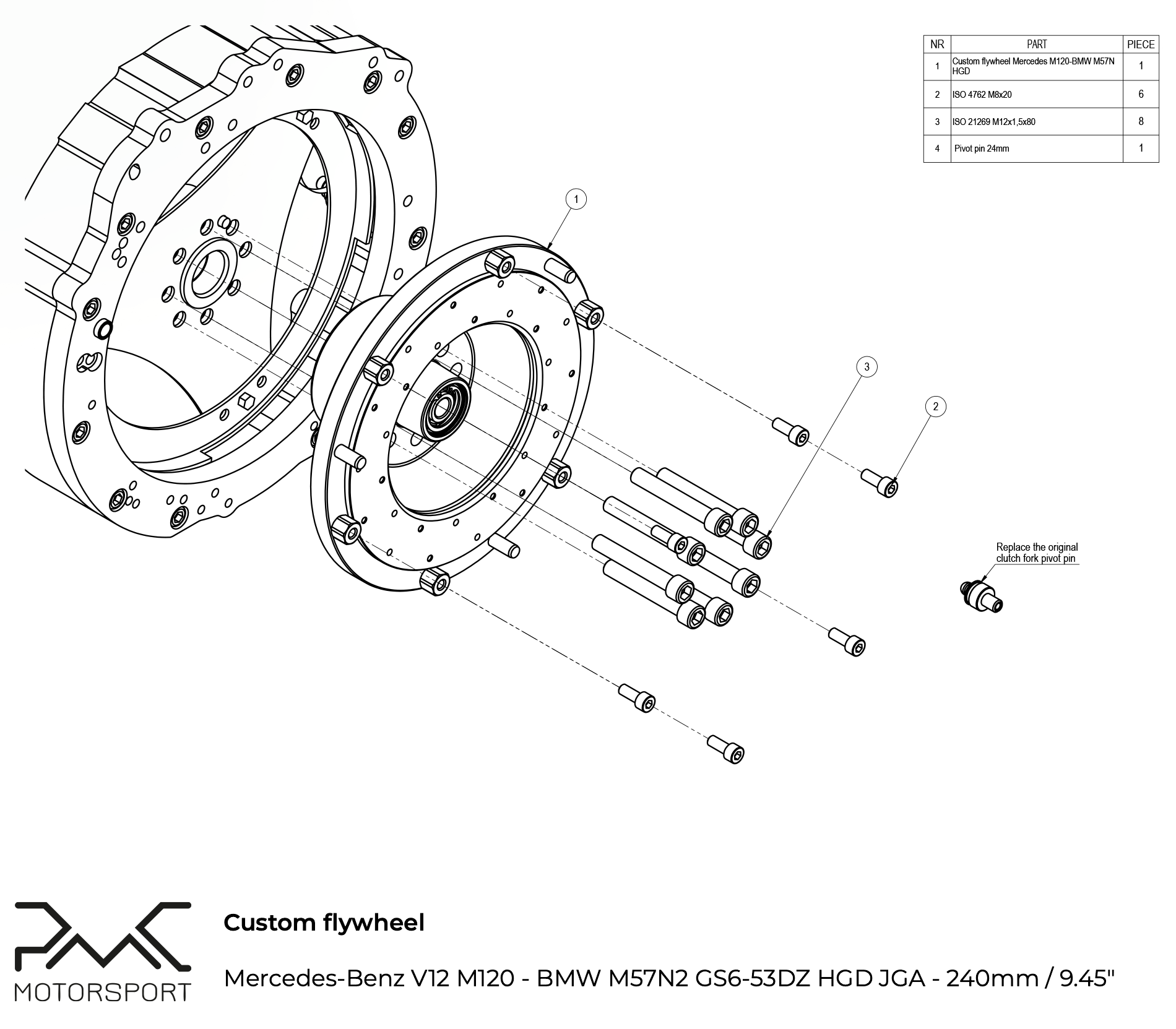 ! Customowe koło zamachowe wymaga użycia wieńca / koła zamachowego od automatu Mercedes-Benz M120 - brak w zestawie!