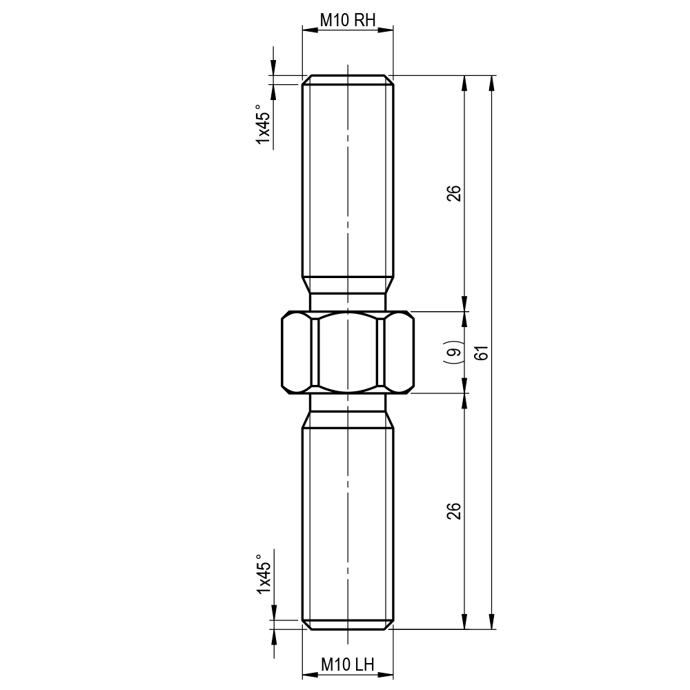 - PMC motorsport Śruba rzymska z gwintem M10 + dwie nakrętki kontrujące (prawa i lewa)